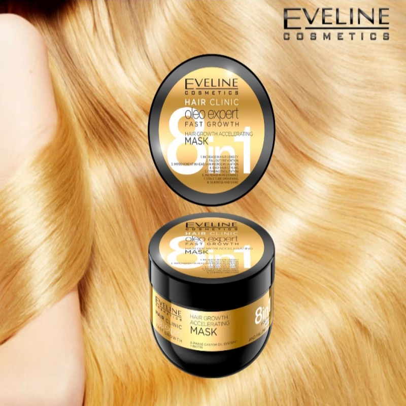 Masca pentru par 8 in 1 Oleo Expert de la Eveline Cosmetics este conceput special pentru a accelera cresterea parului si pentru a intari intens parul fara volum si stralucire. Tehnologia inovatoare inspirata din tratamentele speciale din saloanele profesioniste previne caderea parului, redandu-i luciul spectaculos, netezimea matasoasa si protejand impotriva efectului de par mat.