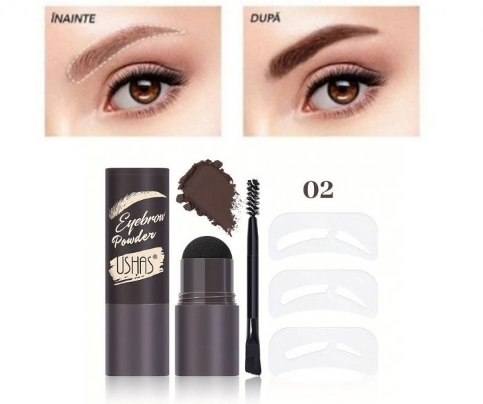 Kit pentru sprancene cu stampila, sabloane si pensula, Nuanta 02