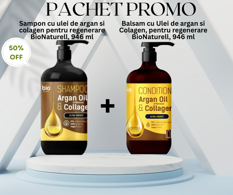 Descoperiți secretul unui păr revitalizat și plin de vitalitate cu Șamponul Bionaturell cu Ulei de Argan & Colagen. Formula sa unică, îmbogățită cu ingrediente naturale, este concepută pentru a oferi părului dumneavoastră o regenerare profundă și o strălucire de invidiat.