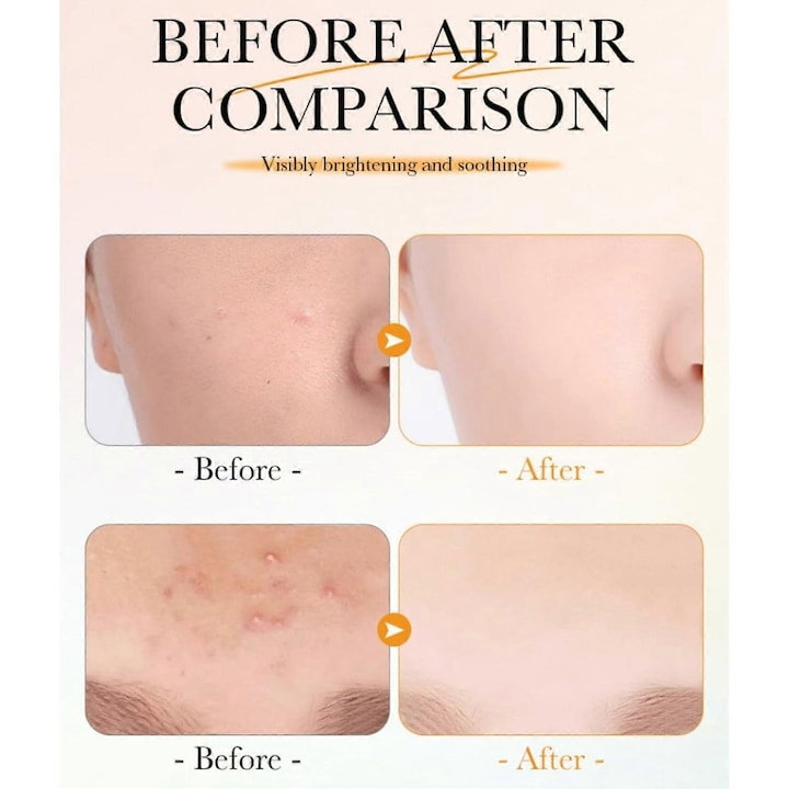 Da – combinația Vitamina C + Niacinamidă este una dintre cele mai studiate duo-uri pentru hiperpigmentarea post-acnee (PIH): Vitamina C inhibă enzima tirosinaza și reduce producția de melanină; Niacinamida blochează transferul melaninei la suprafața pielii. Rezultatul în timp (4–8 săptămâni de utilizare regulată): pete mai puțin vizibile, ton mai uniform, ten mai luminos. 98.8% din utilizatori au confirmat ameliorarea în testare.